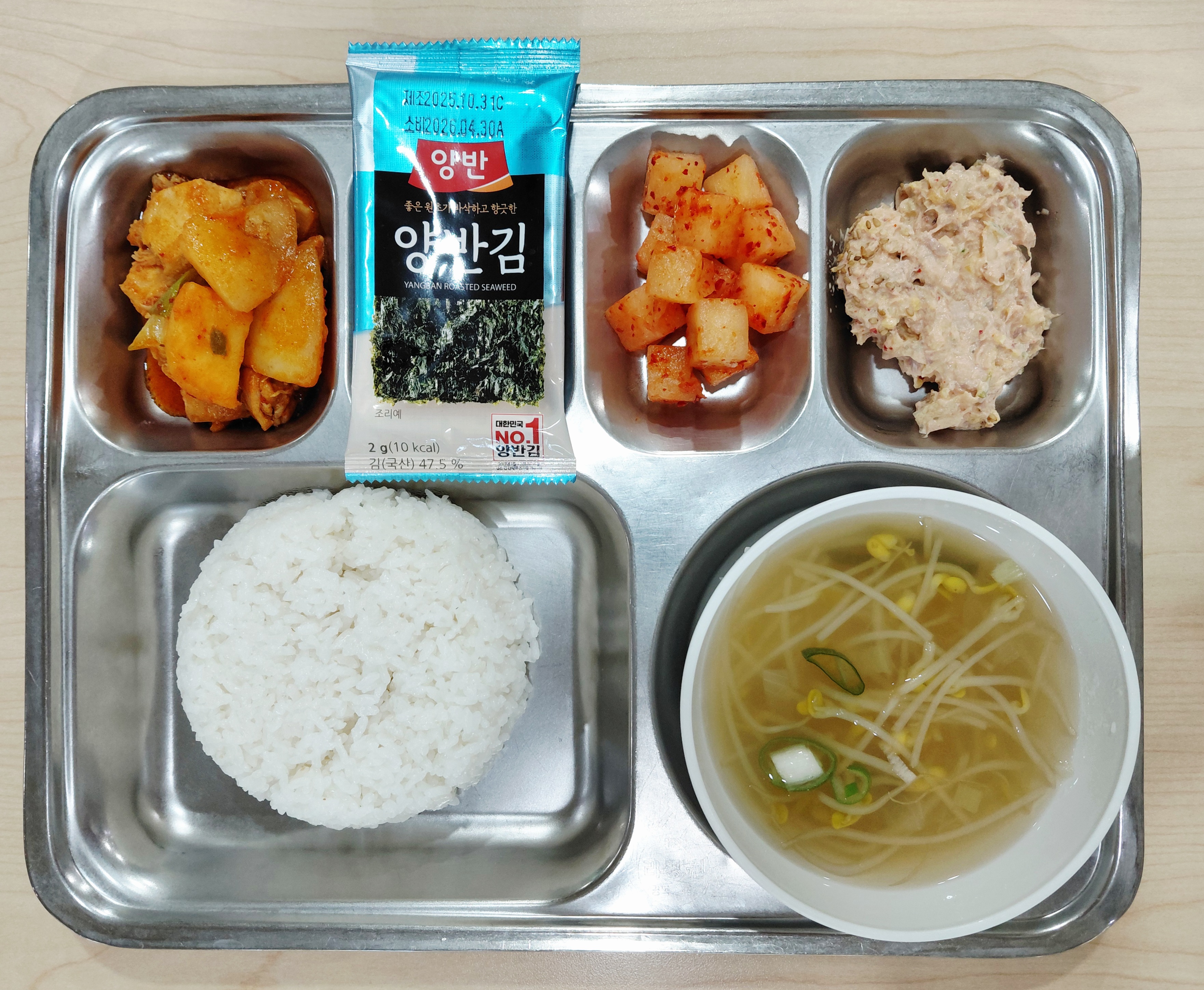 쌀밥/콩나물국/닭볶음탕/묵은지참치마요/도시락김/깍두기