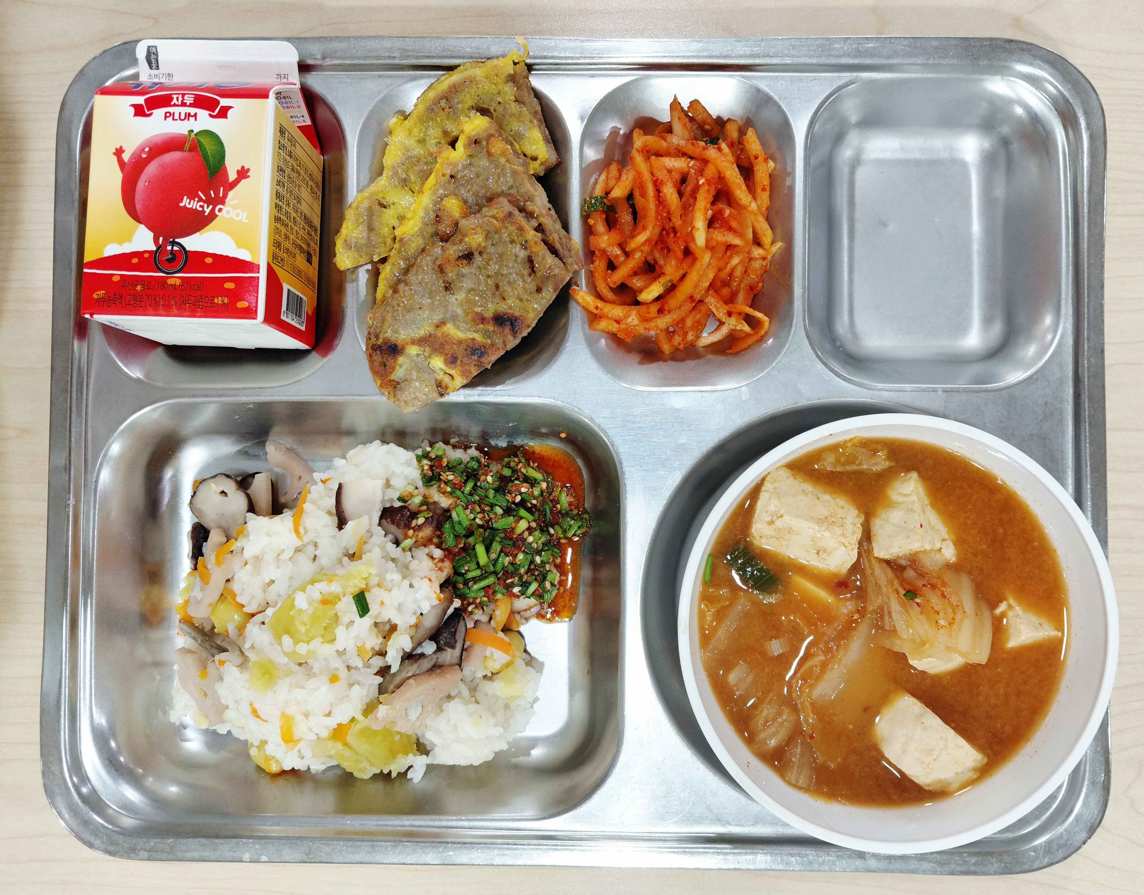 뿌리채소영양밥&양념장/청국장찌개/바싹불고기육전/무생채/쥬시쿨