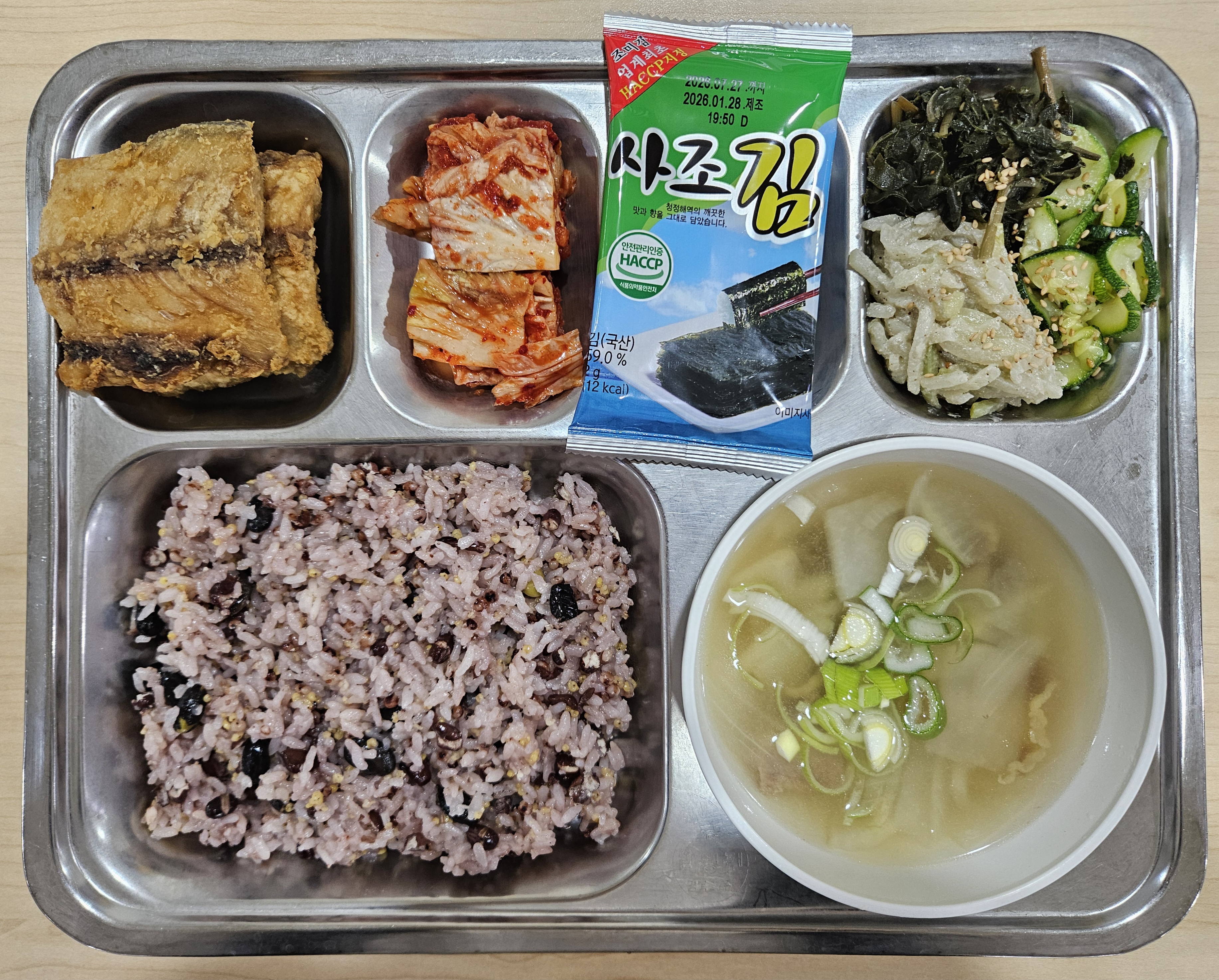 오곡밥 / 소고기무국 / 삼치구이 / 취나물&호박나물&무나물 / 도시락김 / 배추김치