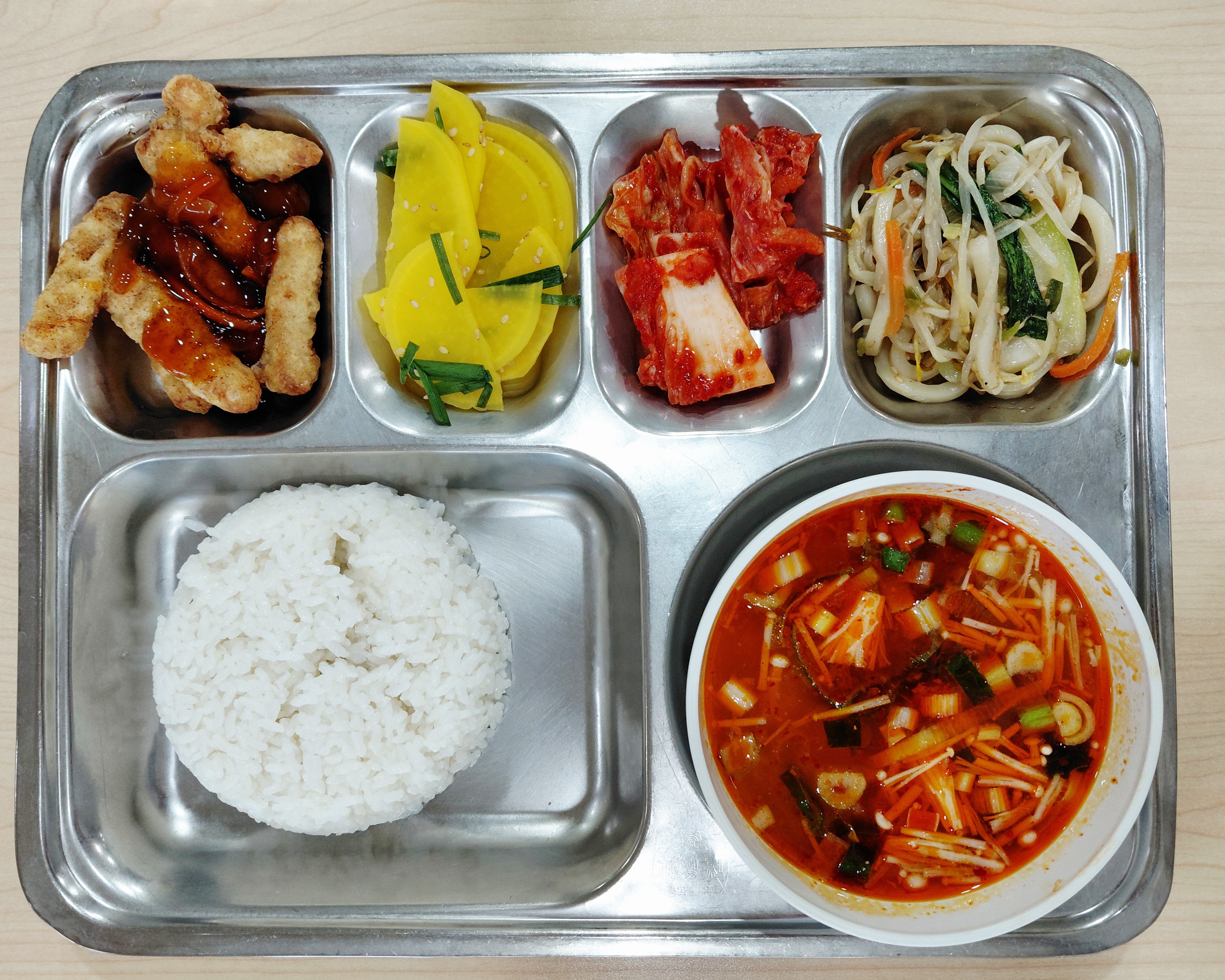 쌀밥/순두부찌개/탕수육&소스/볶음우동/단무지무침/배추김치