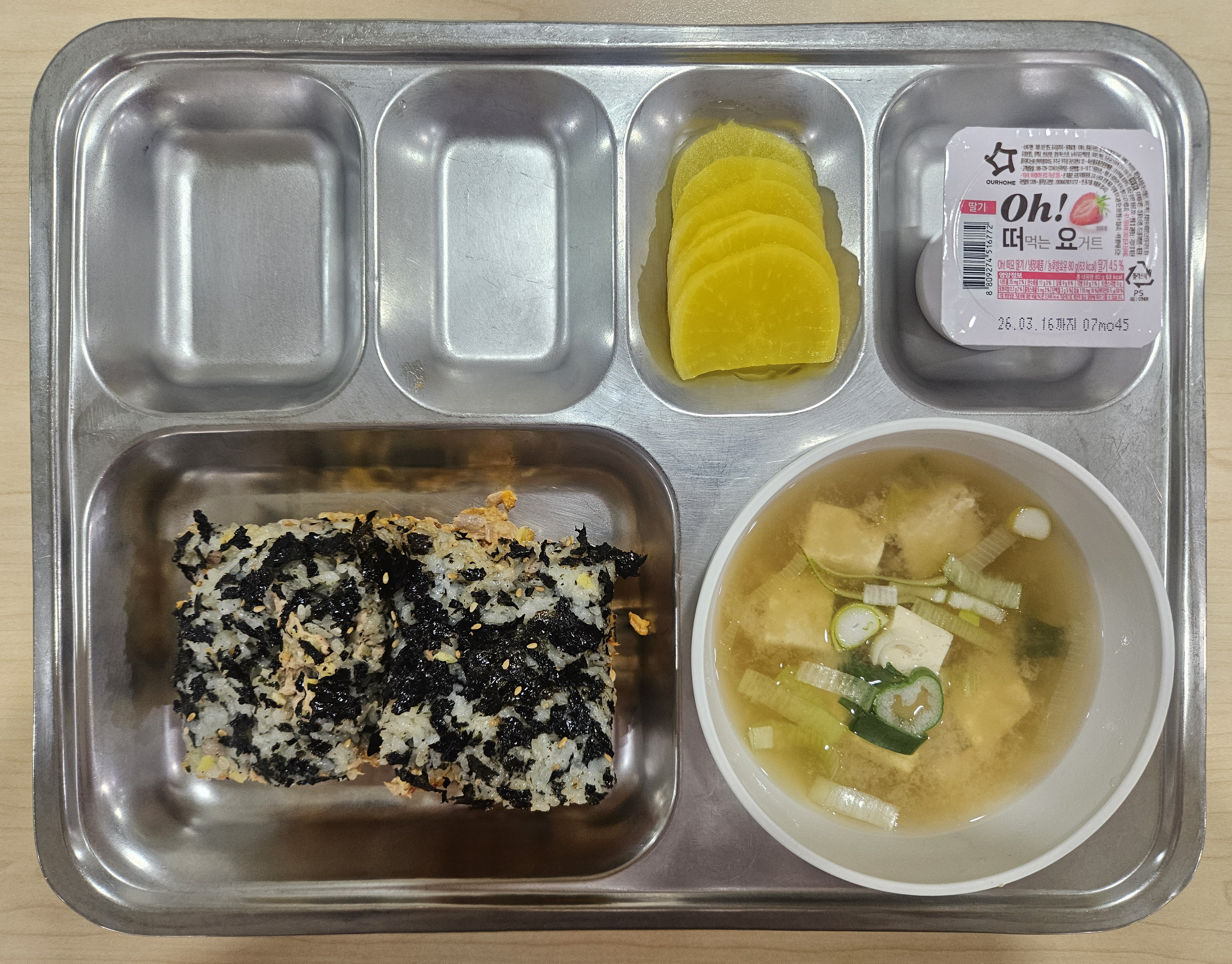 참치김치밥버거 / 미소장국 / 단무지 / 떠먹는요거트